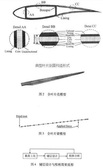 葉片結(jié)構(gòu)滿足適當(dāng)?shù)膹姸纫蠛蛣偠纫蟆?BR> 風(fēng)電葉片設(shè)計可分為氣動設(shè)計和結(jié)構(gòu)設(shè)計這兩個大的階段,其中氣動設(shè)計要求滿足前兩條目標(biāo),結(jié)構(gòu)設(shè)計要求滿足后四條目標(biāo)。通常這兩個階段不是獨立進(jìn)行的,而是一個迭代的過程,葉片厚度必須足夠以保證能夠容納腹板,提高葉片剛度。