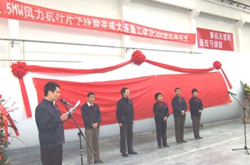 2007年12月30日上午,中復連眾風力機葉片基地二分廠八號車間熱鬧非凡,中復連眾數(shù)百名員工隆重集會,慶祝2007年第1000片1.5兆瓦風力發(fā)電機葉片下線暨完成華銳風電300套的供貨任務。中復連眾集團總經(jīng)理喬光輝主持了慶典儀式。
