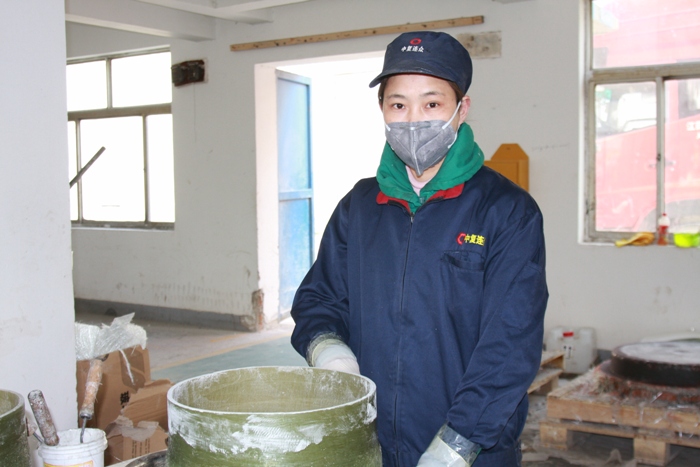 作為班長,白景惠除了要合理安排每天的工作任務(wù),還要做好自己的法蘭內(nèi)襯制作工作,主要是對內(nèi)襯進(jìn)行打底,她工作很有效率,一天能制作二十幾個法蘭半成品。針對工作環(huán)境的要求,她穿著好幾層的衣服,還戴著兩層口罩。她說,這在冬天沒什么,可到了夏天的時候,人再包裹的這么嚴(yán)實就有點受不了了,上班時間大家一直穿著被汗水浸透的衣服。雖然工作環(huán)境艱苦,但是白景惠任勞任怨,八年來始終堅守在這個看似平凡的崗位上,默默的奉獻(xiàn)自己的青春和熱情,先后完成了多項國內(nèi)外工程。