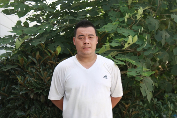 值班室里悶熱無比,陽光從四面玻璃照進(jìn)來,讓人無處可躲,室外溫度33度,值班室的溫度卻將近38度。即使有臺電風(fēng)扇,劉玉軍工作服的后背還是濕到了衣角,臉上的汗水還在不停地往下滴,他只能不時(shí)地用毛巾擦拭。別看這樣的一個(gè)彪形大漢,劉玉軍的心思還是很細(xì)的。同事掉落的東西,他看見了就會幫忙保管起來。去年,他還參加了公司舉辦的大專班的化工工藝學(xué)習(xí)課程。他說,以前對玻璃鋼相關(guān)知識了解不全面,學(xué)了這個(gè)課程能夠彌補(bǔ)這方面的缺陷,雖然現(xiàn)在自己在經(jīng)警隊(duì)上班,但是公司經(jīng)常有客戶到訪,要是被問到的話也能夠很自信地給他們做介紹。”