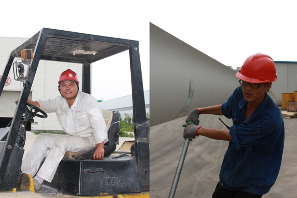 在大浦葉片機(jī)加工車間,筆者看到幾名工人正在對葉片進(jìn)行打磨。按照作業(yè)要求,無論室溫多高,他們都必須整齊地穿著工作服,戴著口罩,把自己包裹地嚴(yán)嚴(yán)實(shí)實(shí)。打磨葉片看似輕松,其實(shí)非常消耗體力,同時(shí)也需要一顆細(xì)致的心,才能保證葉片完美。張洪波就是這樣的一位打磨工人,工作6年了,每天和同事一起將脫模的葉片打磨光滑,工作仔細(xì)認(rèn)真,保質(zhì)保量,哪里有針眼,就修補(bǔ)然后再打磨。