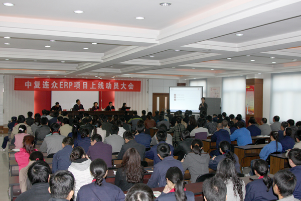 10月28日,中復(fù)連眾在科研樓五樓會(huì)議室召開(kāi)ERP項(xiàng)目上線動(dòng)員大會(huì)。中復(fù)連眾董事長(zhǎng)任桂芳、總經(jīng)理喬光輝、東軟公司總監(jiān)付春江、慧德監(jiān)理公司項(xiàng)目經(jīng)理王凌虹,全體管理人員、車間工藝員、核算員、班組長(zhǎng)代表出席會(huì)議。東軟公司郭廣峰項(xiàng)目經(jīng)理就上線策略與上線計(jì)劃、上線準(zhǔn)備情況、ERP系統(tǒng)作業(yè)規(guī)范做了說(shuō)明。中復(fù)連眾副總工程師、信息管理部主任田超凱主持會(huì)議。