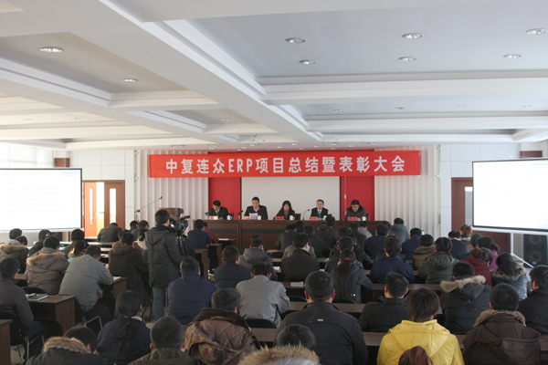12月24日,中復連眾ERP項目總結和表彰大會在五樓會議室舉行,連云港市經信委科技處處長馮燕琴、中復連眾總經理喬光輝、東軟公司總經理章越、慧德公司總經理陸韌鋼出席了會議,會議由中復連眾副總工程師田超凱主持。