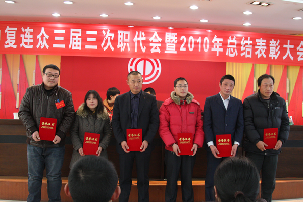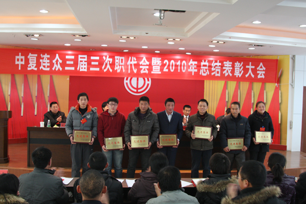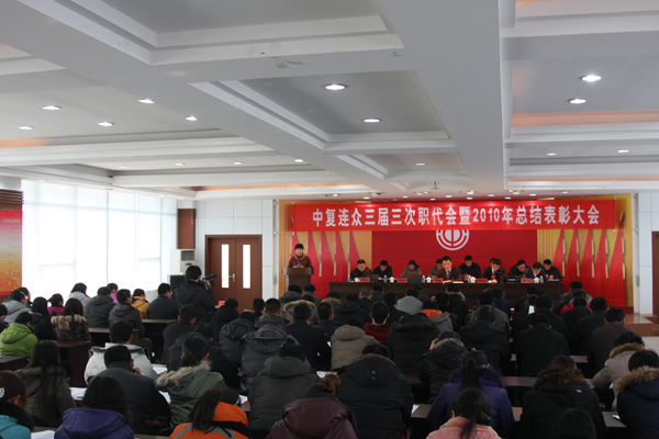 ?;⑥o舊歲,吉兔送福來。1月26日,中復(fù)連眾迎來兩件喜事,第三屆三次職工代表大會和2010年度總結(jié)表彰大會同時召開。來自各條戰(zhàn)線的職工代表、行管人員和受表彰人員歡聚一堂,回顧總結(jié)企業(yè)一年來的工作成績,振奮精神,堅定信念,喜迎2011。
