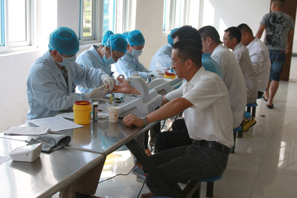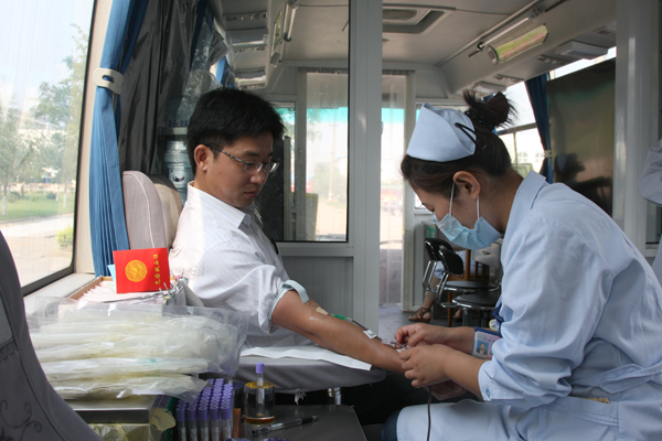 在獻(xiàn)血現(xiàn)場,大家填寫表格、測量血壓、驗(yàn)血、抽血,有條不紊,員工們排起長長的隊(duì)伍。隊(duì)伍中有公司高管、中層管理人員,也有來自基層的生產(chǎn)工人;有剛剛參加工作的大學(xué)生,也有工作了二十幾年的老黨員們;有第一次鼓起勇氣獻(xiàn)血的,也有多次獻(xiàn)血的……管道車間楊澤平經(jīng)理第一個(gè)登上了采血車,勇敢地伸出來胳膊,這是他第一次獻(xiàn)血—300cc;一位新員工說,作為社會(huì)新鮮人,這是一堂重要的社會(huì)課,他們要從這一刻起,要學(xué)會(huì)奉獻(xiàn)社會(huì)、承擔(dān)責(zé)任。