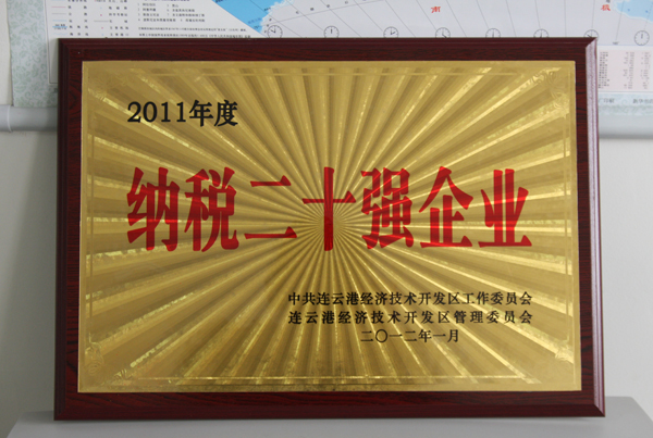 中復(fù)連眾喜獲連云港開發(fā)區(qū)納稅二十強榮譽稱號