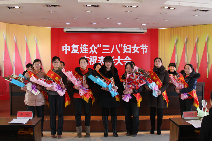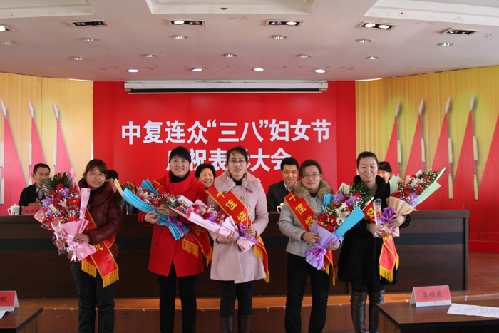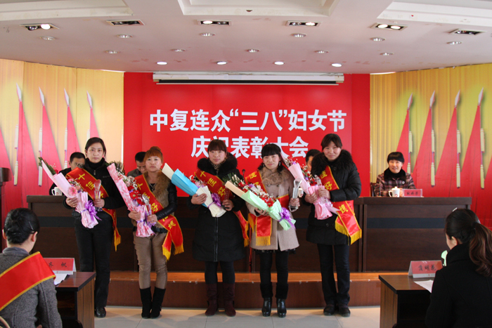 3月7日下午,五樓會(huì)議室里鮮花簇?fù)怼⒋阂馊谌冢袕?fù)連眾隆重舉行“三八節(jié)”慶祝表彰大會(huì),授予二十位女職工“十佳好兒媳”、“十佳賢內(nèi)助”稱號(hào)。