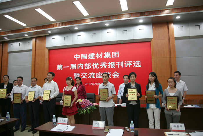 首屆中國建材集團(tuán)內(nèi)部?jī)?yōu)秀報(bào)刊評(píng)選活動(dòng)于9月25日在企業(yè)家聯(lián)合會(huì)第一會(huì)議室落下帷幕,本次活動(dòng)共產(chǎn)生一等獎(jiǎng)5名,二等獎(jiǎng)10名,三等獎(jiǎng)11名,《中復(fù)集團(tuán)報(bào)》在24家企業(yè)26份報(bào)刊激烈而生動(dòng)的角逐中脫穎而出,獲得本次活動(dòng)二等獎(jiǎng)。集團(tuán)公司十分重視本次活動(dòng),總經(jīng)理姚燕出席會(huì)議并作重要講話。集團(tuán)公司副總經(jīng)理許金華、工會(huì)主席熊吉文、《中國建材報(bào)》總編孟憲江、《中國建材》雜志社社長(zhǎng)秦春雨等出席會(huì)議并作精彩點(diǎn)評(píng)。