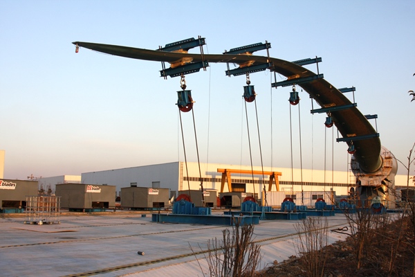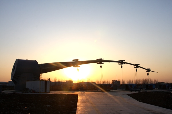 11月30日,中復(fù)連眾10兆瓦試驗臺正式啟用,順利完成首只62米、5兆瓦風(fēng)機葉片靜力試驗。