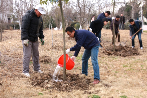 3月14日,中復連眾啟動一年一度的植樹綠化活動,來自行政部、財務部、信息管理部等部門的三十余名黨員干部和積極分子在董事長任桂芳的帶領下,共同在和諧園栽種了一批女貞、紫葉李和木槿等苗木,此前在和諧園栽種的樹木全部成活,長勢良好。在植樹的同時,大家又給園內的其他樹木進行了澆水、圍土,揀除園內雜物,進一步美化廠區(qū)環(huán)境。