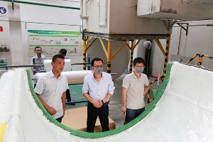 參會代表在中復(fù)連眾生產(chǎn)廠長張健康的帶領(lǐng)下,參觀了培訓(xùn)中心、葉片生產(chǎn)車間、檢測中心、12MW葉片全尺寸試驗(yàn)平臺。參觀過程中,中復(fù)連眾同仁細(xì)心的解答了機(jī)艙罩供應(yīng)商代表提出的各項(xiàng)問題。