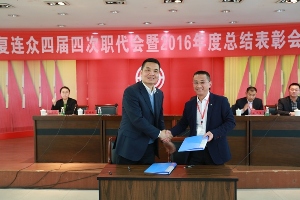 公司以總結(jié)表彰會(huì)與工會(huì)職代會(huì)“套開”的形勢舉行,促進(jìn)了職工參與民主管理。副總經(jīng)理、工會(huì)主席王彤兵在題為《圍繞中心 強(qiáng)化服務(wù) 努力開創(chuàng)中復(fù)連眾工會(huì)工作新局面》的報(bào)告中回顧總結(jié)了2016年在企業(yè)民主管理、創(chuàng)新團(tuán)隊(duì)建設(shè)、職工素質(zhì)提升、和諧企業(yè)構(gòu)建和企業(yè)文化建設(shè)等方面開展的工作,深刻剖析了存在的不足,面向2017年工作, 要求做好融入中心工作、提升職工素質(zhì)、推進(jìn)民主管理、維護(hù)職工權(quán)益、開展文體活動(dòng)、加強(qiáng)自身建設(shè)等六個(gè)方面的工作。大會(huì)報(bào)告了四屆三次職代會(huì)提案落實(shí)和本次職代會(huì)提案收集情況。