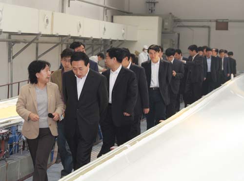 4月14上午,濟(jì)寧黨政代表團(tuán)孫守剛一行在連云港市領(lǐng)導(dǎo)徐一平的陪同下,參觀了中復(fù)連眾大浦葉片工業(yè)園區(qū)。