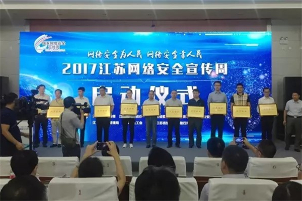 2017年9月18日,江蘇省網(wǎng)絡安全宣傳周在南京啟動。啟動儀式發(fā)出了網(wǎng)絡安全倡議書,向?qū)W生、企業(yè)、網(wǎng)民代表贈送了網(wǎng)絡安全讀本,并為2016年江蘇省兩化融合網(wǎng)絡信息安全示范企業(yè)授牌,中復連眾位列其中。