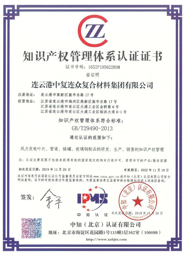 11月21日,中復(fù)連眾獲得由中知(北京)認(rèn)證有限公司頒發(fā)的《知識產(chǎn)權(quán)管理體系認(rèn)證證書》。該證書的獲得,標(biāo)志著中復(fù)連眾知識產(chǎn)權(quán)管理符合《企業(yè)知識產(chǎn)權(quán)管理規(guī)范》標(biāo)準(zhǔn)要求,知識產(chǎn)權(quán)管理水平邁上新臺階。