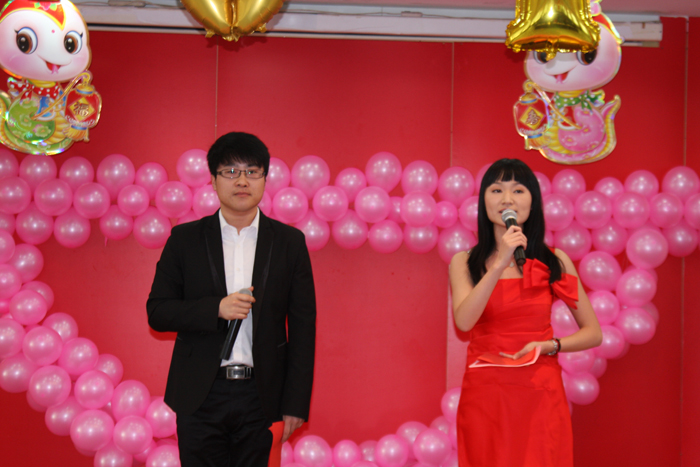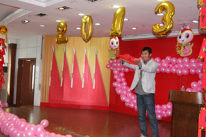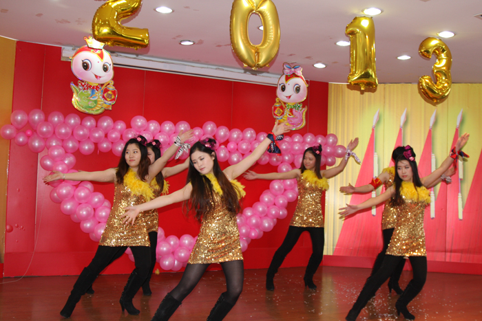 聯(lián)歡會在管罐營銷部范賢浩MJ獨(dú)舞《DANGEROUS》中精彩開幕,掀起一個小高潮;信息管理部周福超一曲《青花瓷》委婉動聽,帶我們感受中國風(fēng)的魅力;范賢浩和信息部張哲寧踏著《Dreams come true》的節(jié)奏,給觀眾不一樣的精彩;管罐營銷部陳冠升傾情演繹了劉歡《我和你》、楊坤《無所謂》和汪峰《我愛你中國》經(jīng)典歌曲,模仿精彩到位、惟妙惟肖。贏得全場最高分貝尖叫的當(dāng)屬財務(wù)部蘇茗茗,她的獨(dú)舞《十分鐘》,揮灑自如,酷勁十足,新一代 “舞后”應(yīng)運(yùn)而生;葉片營銷部王睿妍、管罐國際部吳瑜和范賢浩分別帶來了德文歌曲《即使在雨中》、俄文歌曲《喀秋莎》和韓文歌曲《大長今主題曲》,讓我們感嘆中復(fù)連眾真是藏龍臥虎地;功夫不負(fù)有心人,經(jīng)過一個多月的辛苦排練,黃偉、潘慧等六位美女的舞蹈《SMILE》,終于贏得了陣陣喝彩;郭偉、孫誠的歌曲《溫柔》,配合默契,唱功一流;由李成威、劉世民、譚倩倩、張丹表演的《拜年》講述了一對小夫妻回家拜年的爆笑經(jīng)歷,笑料十足;聯(lián)歡會在《恭喜發(fā)財》中落下帷幕。